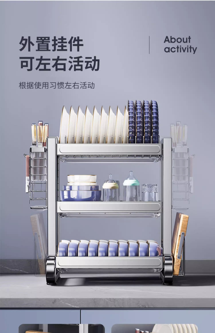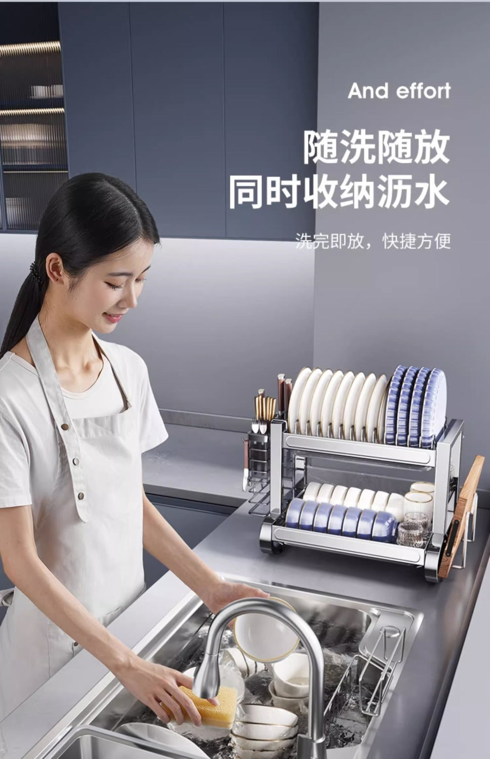 2 /3 Tier Dish Bowl Drainer Storage Rack Kitchen Dish Drying Rack with Drain Basket Countertop Dinnerware Organizer Drainboard