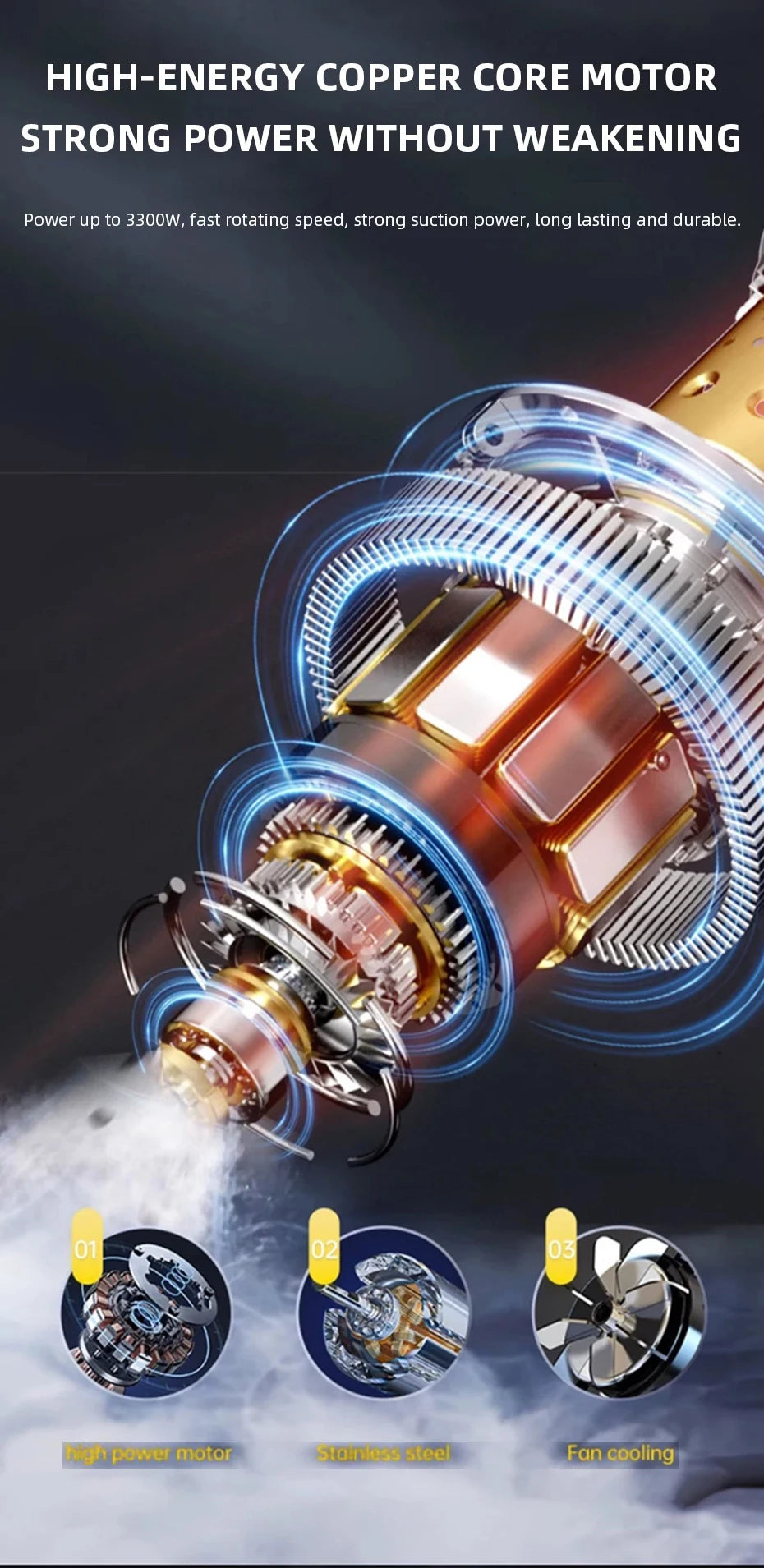 3300W Industrial Wet Dry Vacuum Cleaner Three-In-One Strong Suction Suitable for Home Garage Workshop