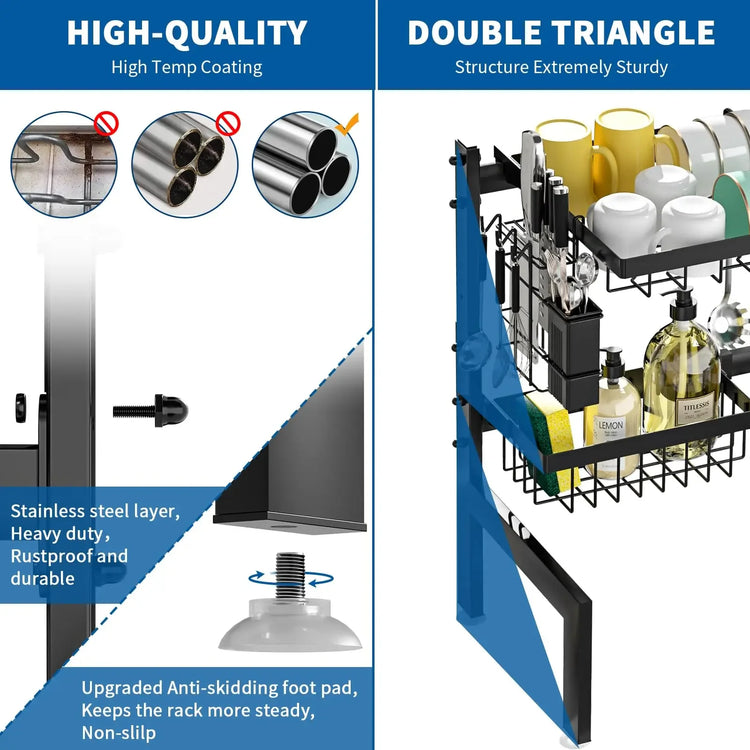 Over The Sink Dish Drying Rack,Expandable 2-Tier Stainless Steel Over The Sink Dish Rack with Utensil Holder Dish Drainers