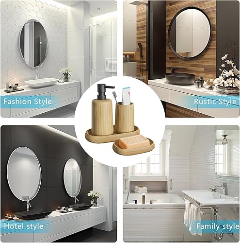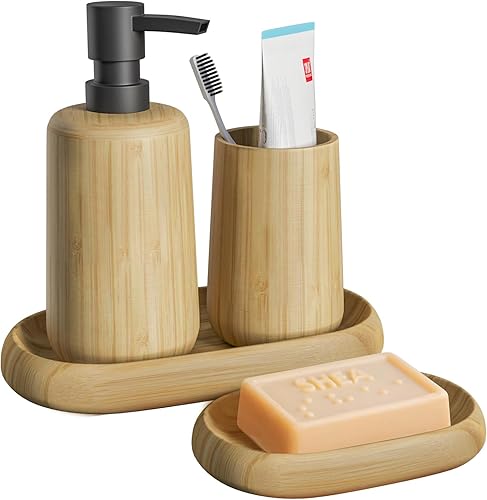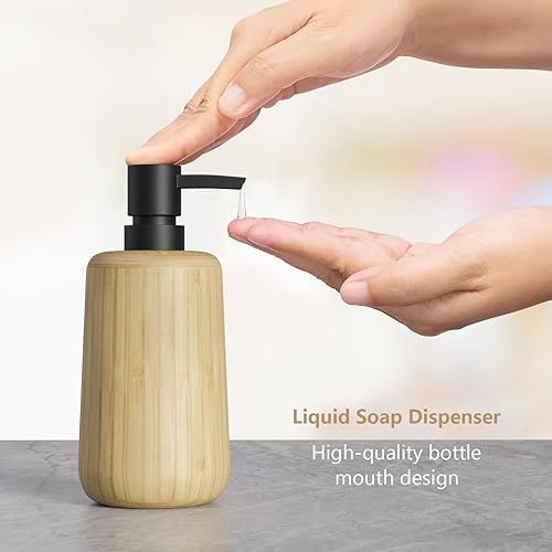 Asashizen 4 Pcs Retro Bamboo Bathroom Accessories Set - Soap Dish, Soap Dispenser, Tray, Mouthwash Cup for Home, Office, Hotel, Bathroom