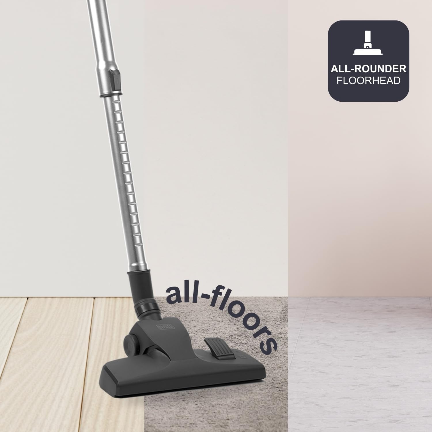 This versatile device is equipped with an All-Rounder head, a metal telescopic tube with a pressure regulator, as well as 2-in-1 and sofa brushes, ensuring optimal performance on all surfaces.