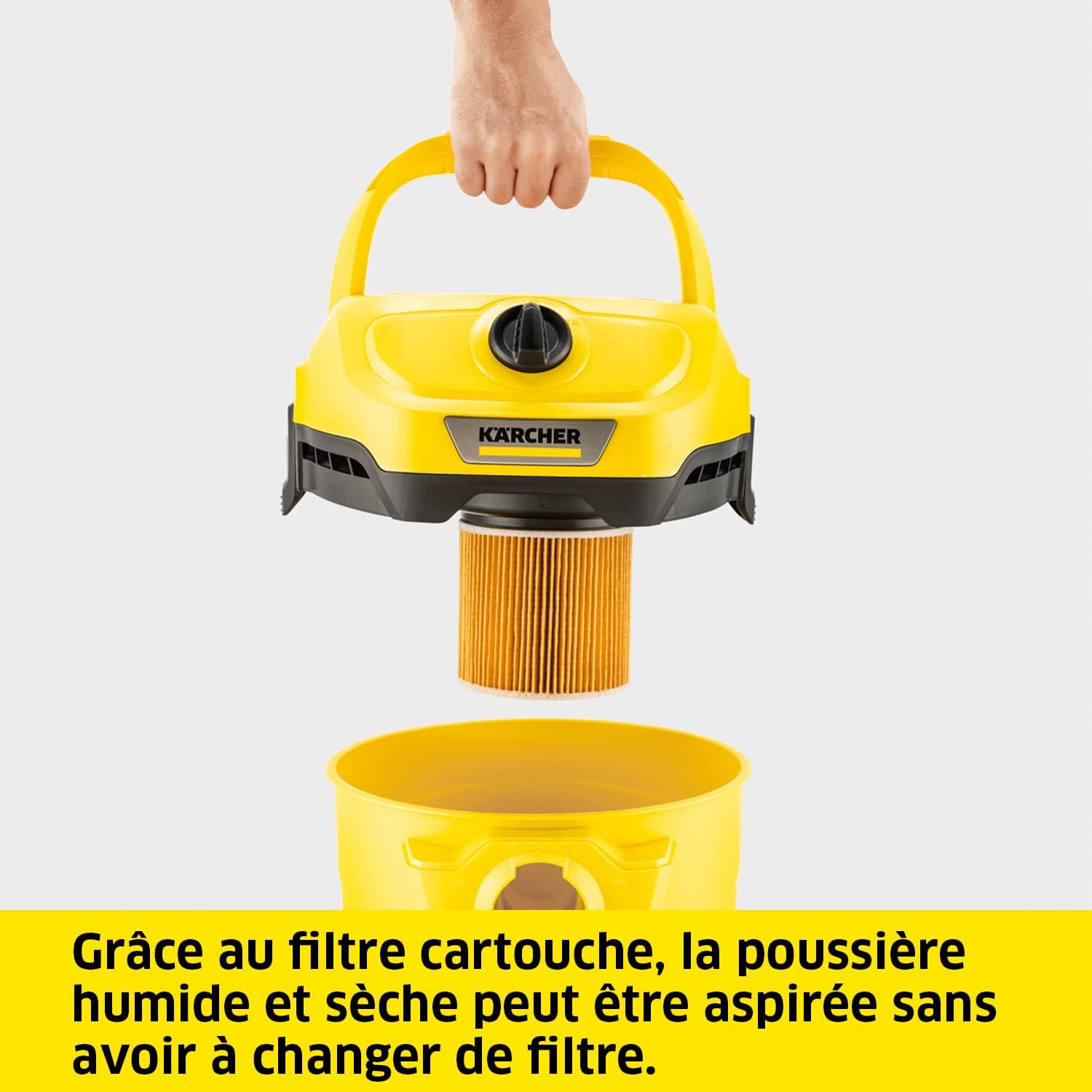 Equipped with a cartridge filter, the WD 2 Plus V-12/4/18/C can handle wet and dry dust without requiring a filter change.