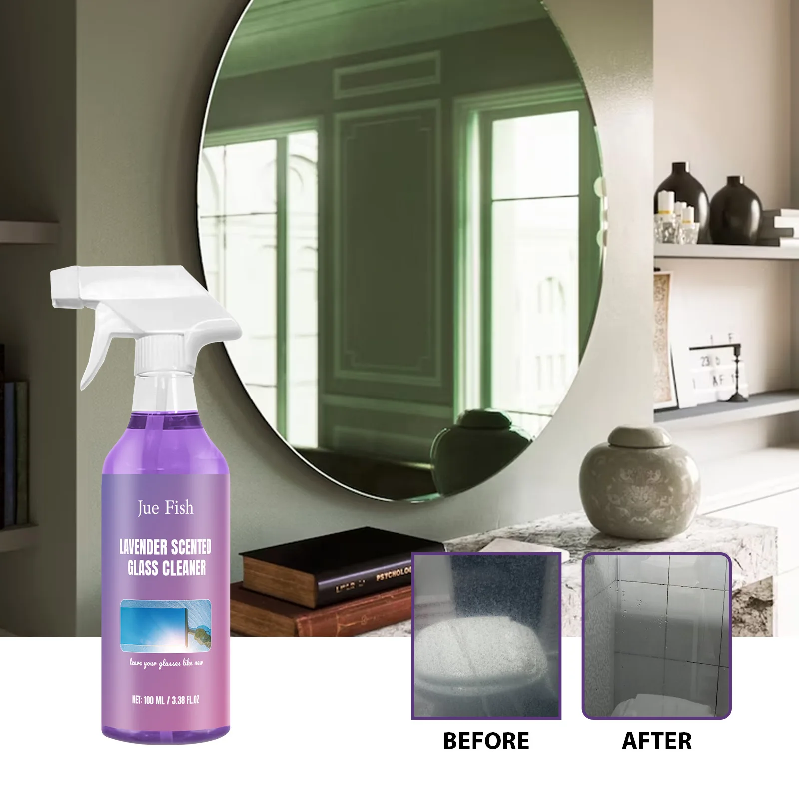 Jue Fish Liquid Glass Cleaner for Bathroom, Shower Door, Hard Water Removal, Car Glass Degreaser, Mirror Brightener, Glass Descaler Spray, 100ml