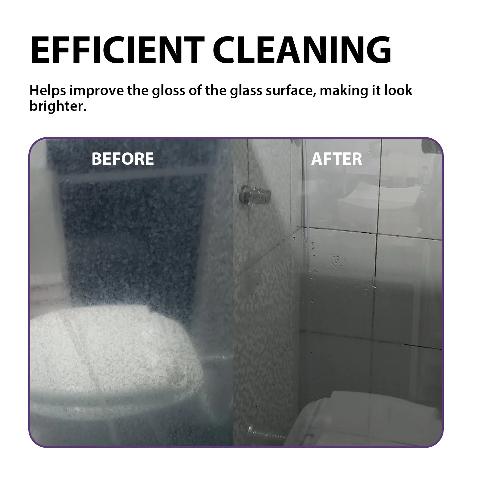 Can be used to clean glass, such as shower doors, bathroom mirrors. It is easy to use and removes soap scum, dirt, hard water buildup, calcium and limescale.