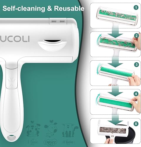LIUCOLU Pet Hair Remover Brush - Reusable and effective tool for removing dog and cat hair and lint from carpets, fabrics, sofas, bedding, cars, clothes, and much more.