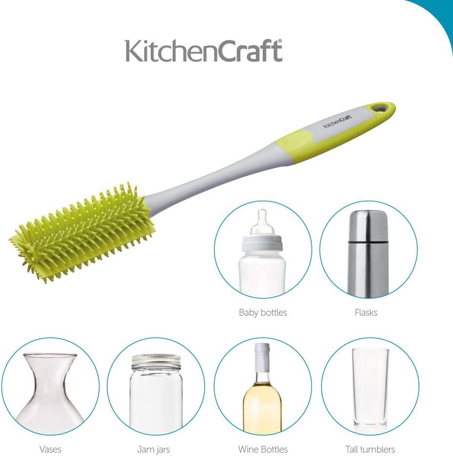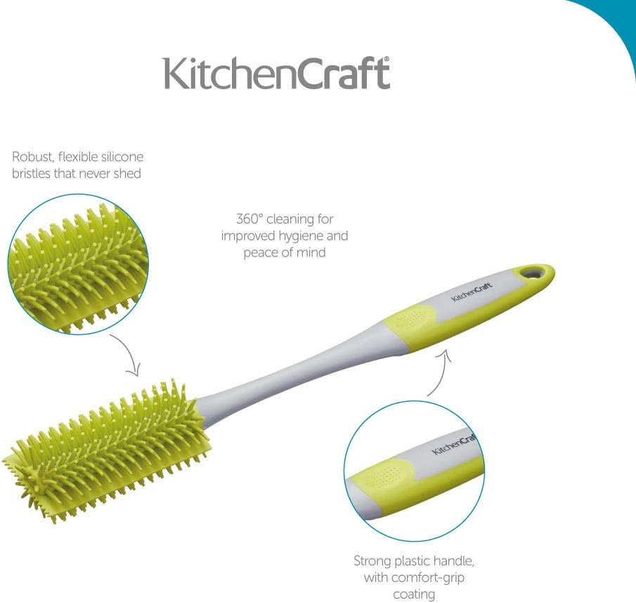 MasterClass offers this 35cm (14") bottle brush, designed for the effective cleaning of bottles and feeding bottles. Its antibacterial silicone finish, in a stylish gray and green, ensures optimal hygiene while protecting delicate surfaces.