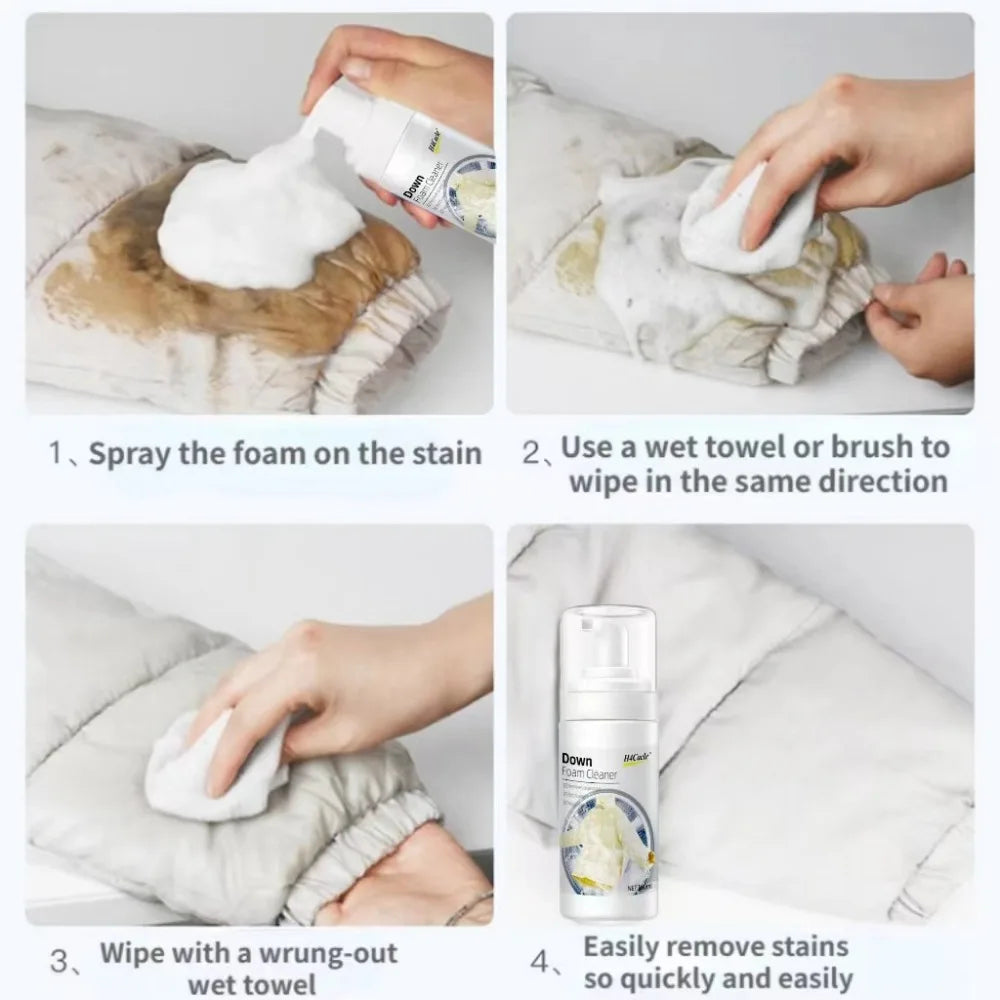 1. No-rinse: Renovate your down jacket easily with our waterless spray. Easily remove tough stains and grease without water. Reduce your cleaning time and save water with this solution.