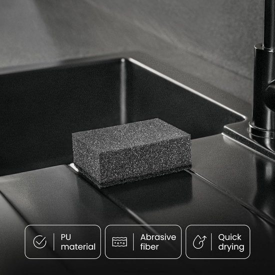 This black kitchen sponge combines strength and versatility, ideal for everyday use. Made from high-quality PU foam, it guarantees exceptional durability while remaining easy to maintain thanks to its hygienic material.