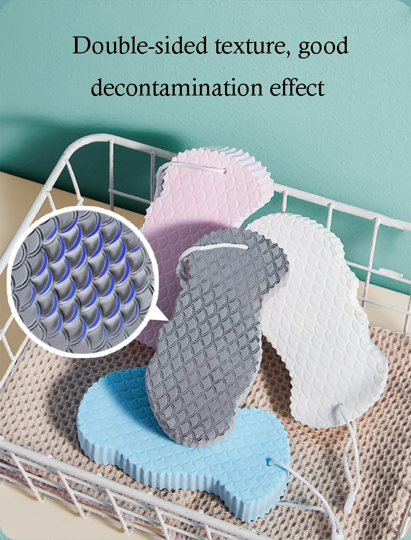 Note: The bath sponge is packaged wet, as it hardens like stone after drying, which prevents bacterial growth. When using, knead it in water and soften quickly. The new product has a slight natural latex odor. It will not emit any odor after a single use. A prolonged humid environment is conducive to bacterial growth. It is recommended to replace it regularly.