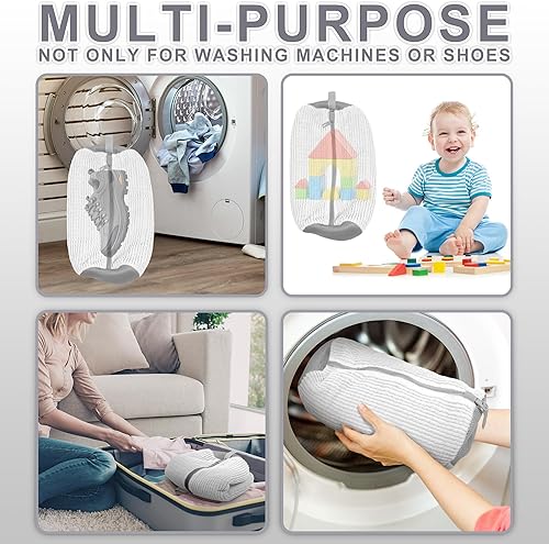 These washing machine bags feature a fabric brush and a high-quality mesh bag with a secure zipper and snap closure. They ensure effective cleaning while protecting your shoes during the wash.