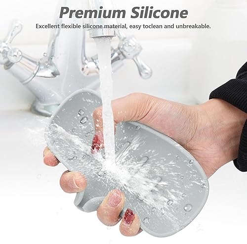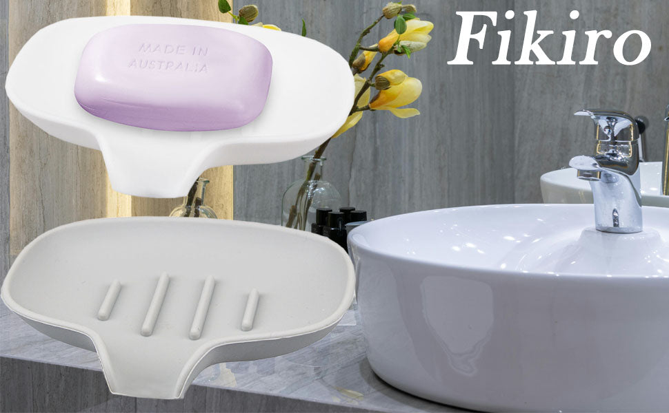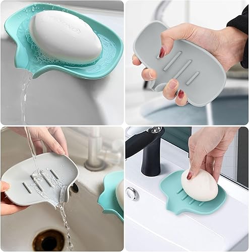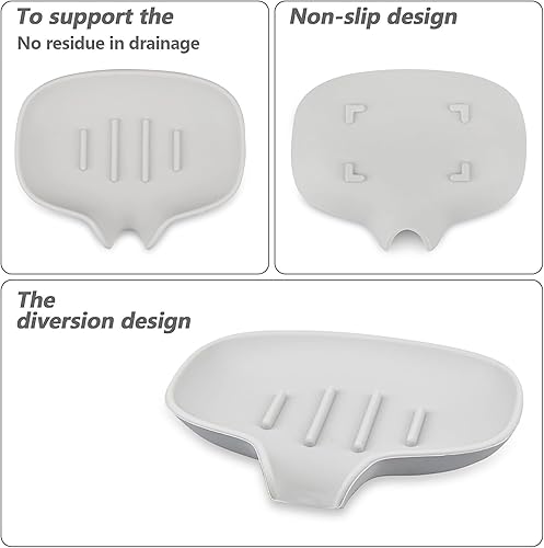 Fikiro 2 Pack Silicone Soap Dish with Drain for Shower Bathroom Kitchen Hand Washing Tray Keep Soap Dry - Grey/White