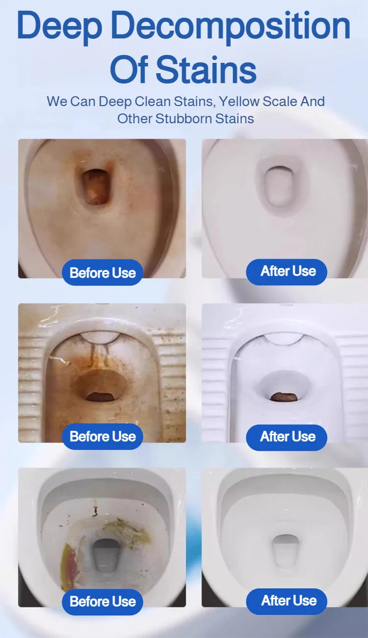 💧 Advanced descaling action : Specialized cleaning agents dissolve limescale and residue, restoring the original appearance of your toilet.