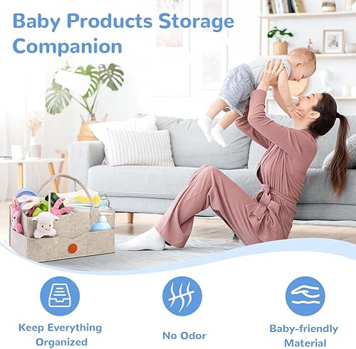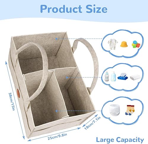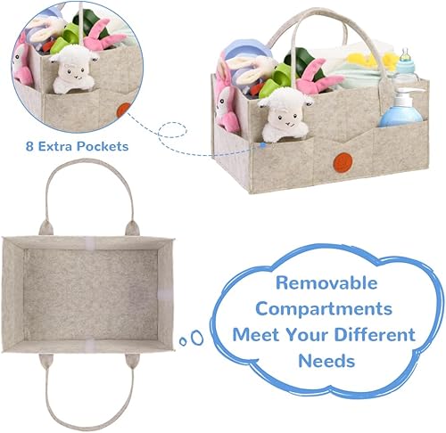 HAGOT Baby Diaper Organizer, Portable Felt Storage Basket with Modular Compartments, is specially designed to store diapers, wipes and inserts conveniently and neatly.