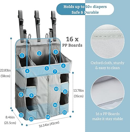 Its large capacity can accommodate more than 50 diapers, as well as multiple pockets dedicated to wipes, creams, lotions, bottles, soothing toys, and even a warmer, guaranteeing tidy storage and impeccable cleanliness.