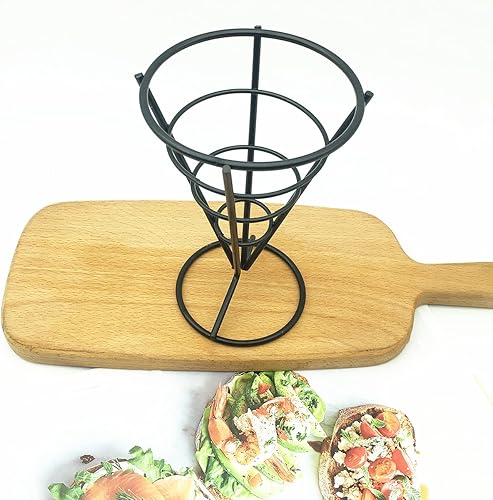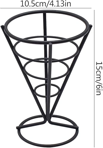 Jicyor 3-piece black French fries stand set, featuring sturdy conical cones designed to hold fries. Ideal for use at home or in professional settings such as restaurants, cafes, bars, snack bars, weddings, and festive events.