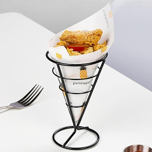 The Jicyor kit includes three durable, easy-to-clean stainless steel conical displays. Lightweight and compact, they allow you to serve fries or other snacks in the provided bags, offering a practical and elegant presentation. Ideal for use in restaurants or at home, this bag holder ensures hygiene and comfort of use every day.