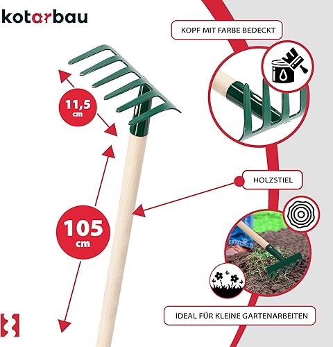 The KOTARBAU® garden rake with 6 steel tines measures 109 x 1000 mm, providing robustness and precision for your gardening...