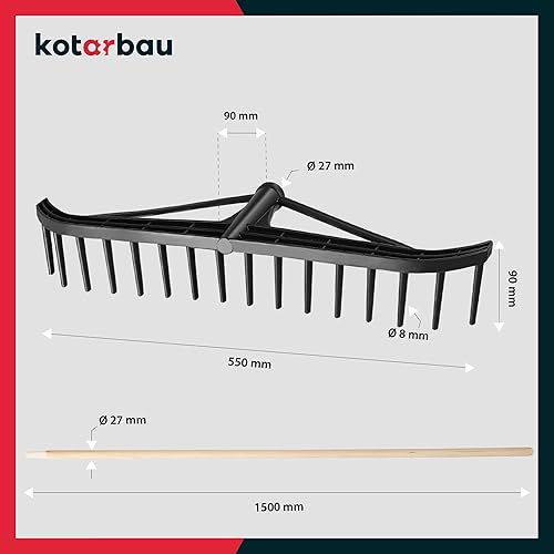 Designed to last and resist bending, this rake makes gardening easier, from hedge care to lawn maintenance, while guaranteeing performance and reliability, the hallmark of the KOTARBAU brand recognized in Europe.