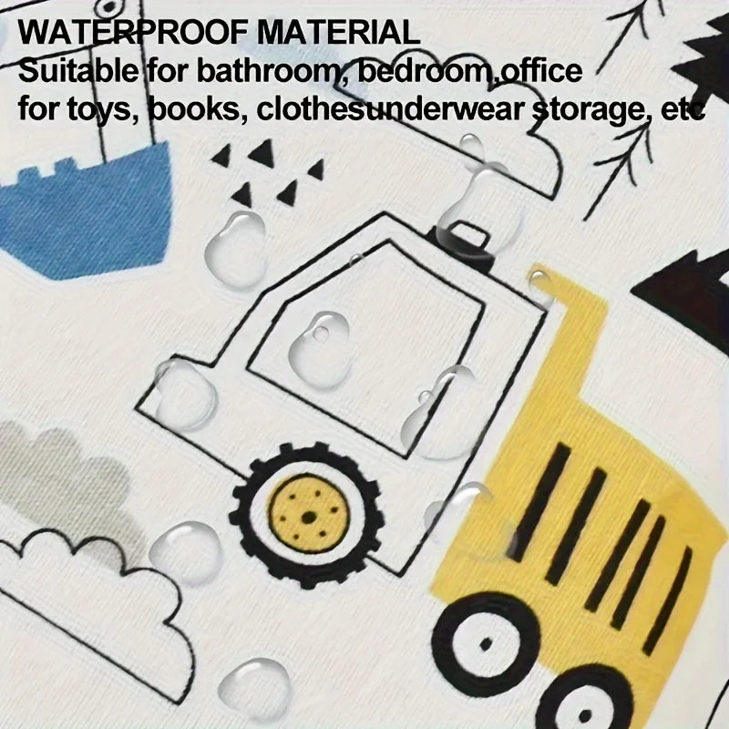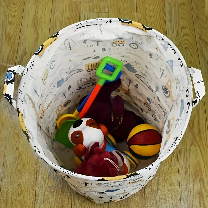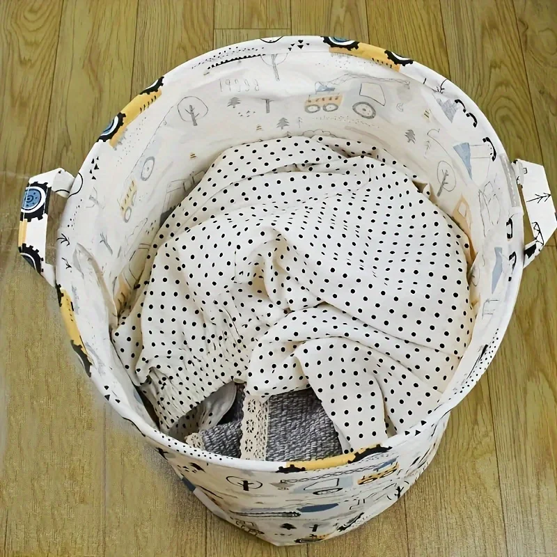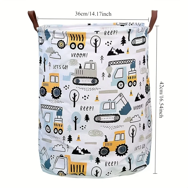 Laundry Basket Large Capacity Cartoon Print Foldable Portable Construction Vehicle Design Sturdy Construction Home Organization