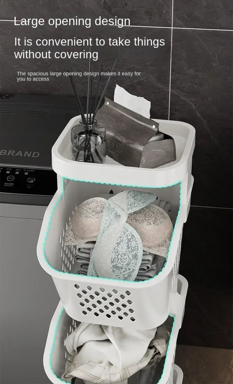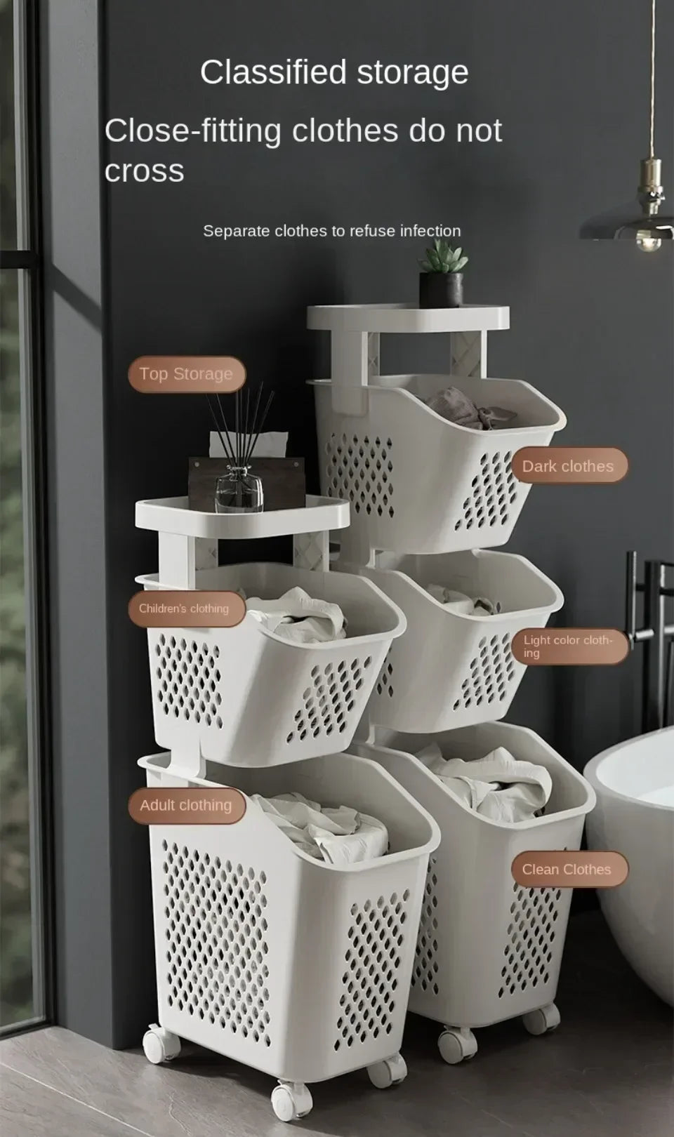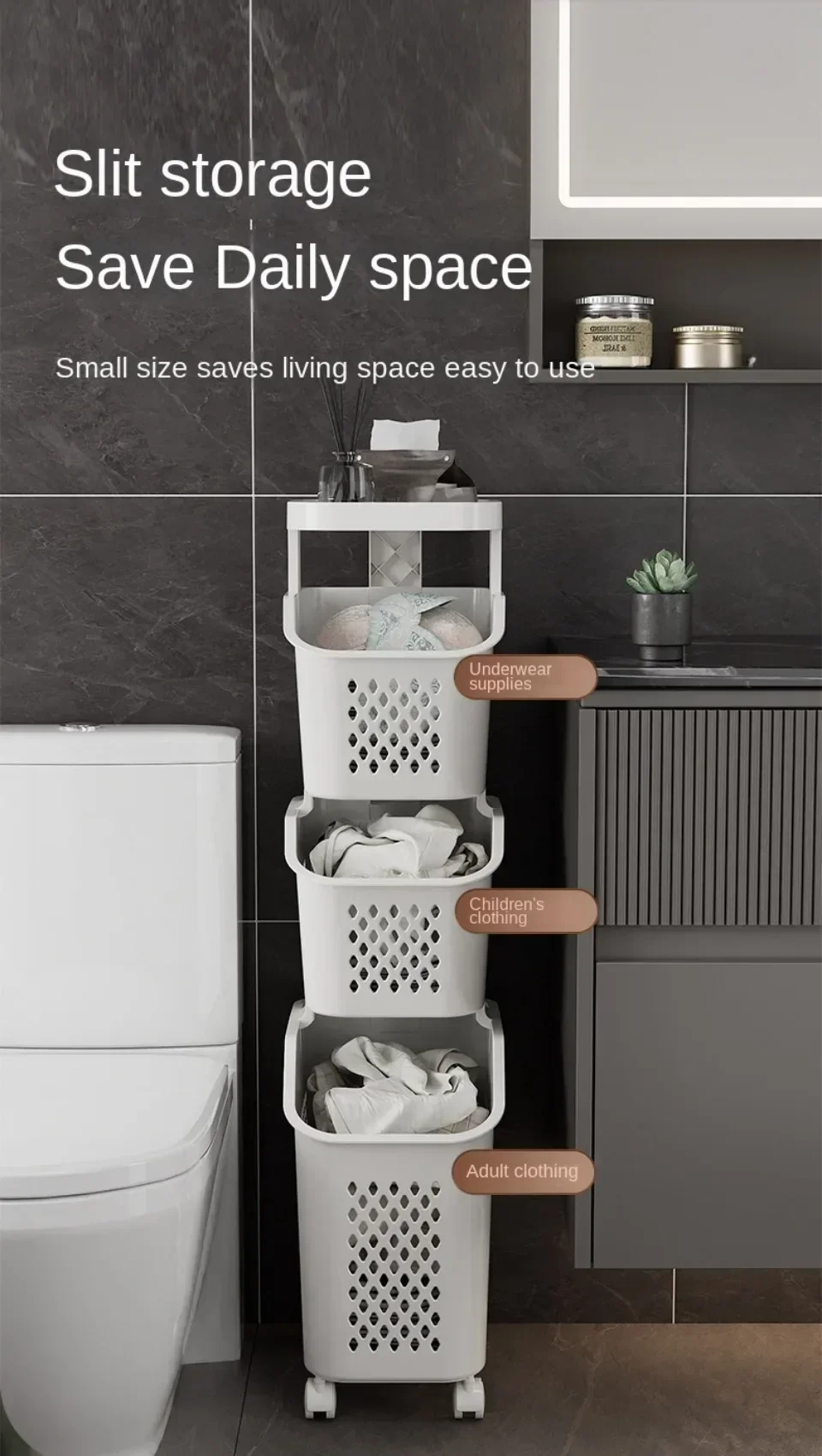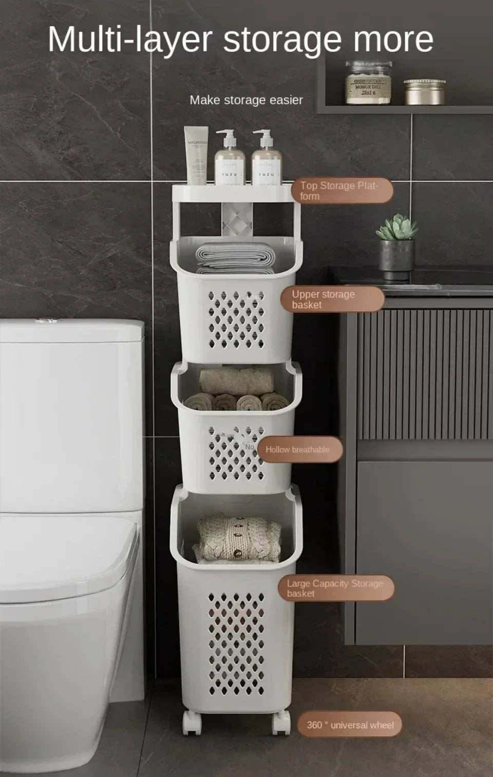 Laundry Storage Rack Basket Multilayer Dirty Clothes Storage Basket With Wheel Large Capacity Household Bathroom Shelf Organizer