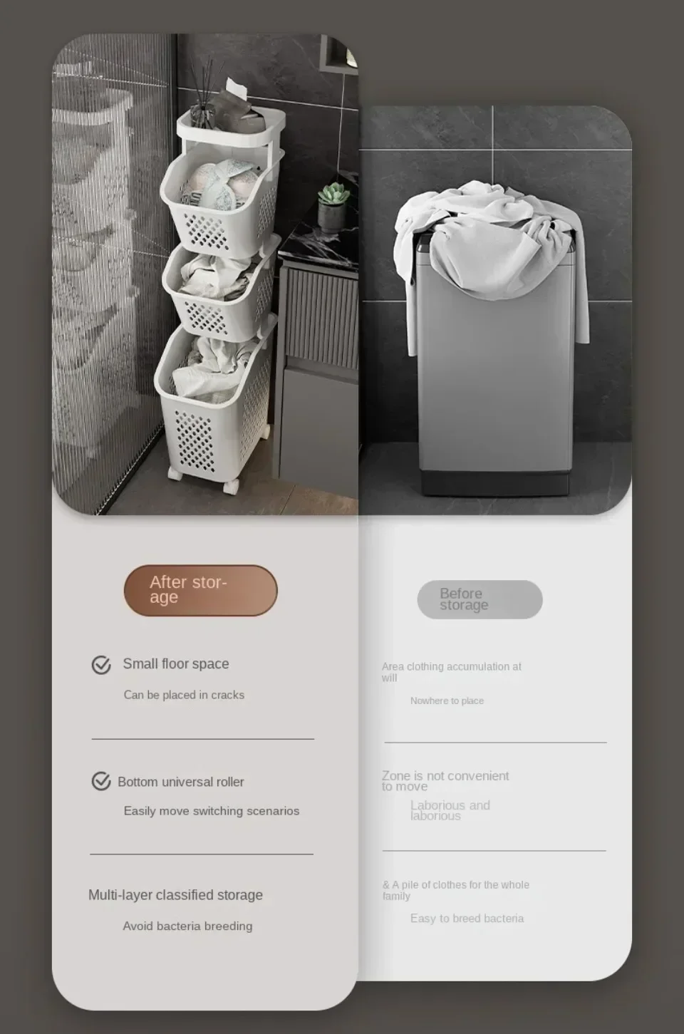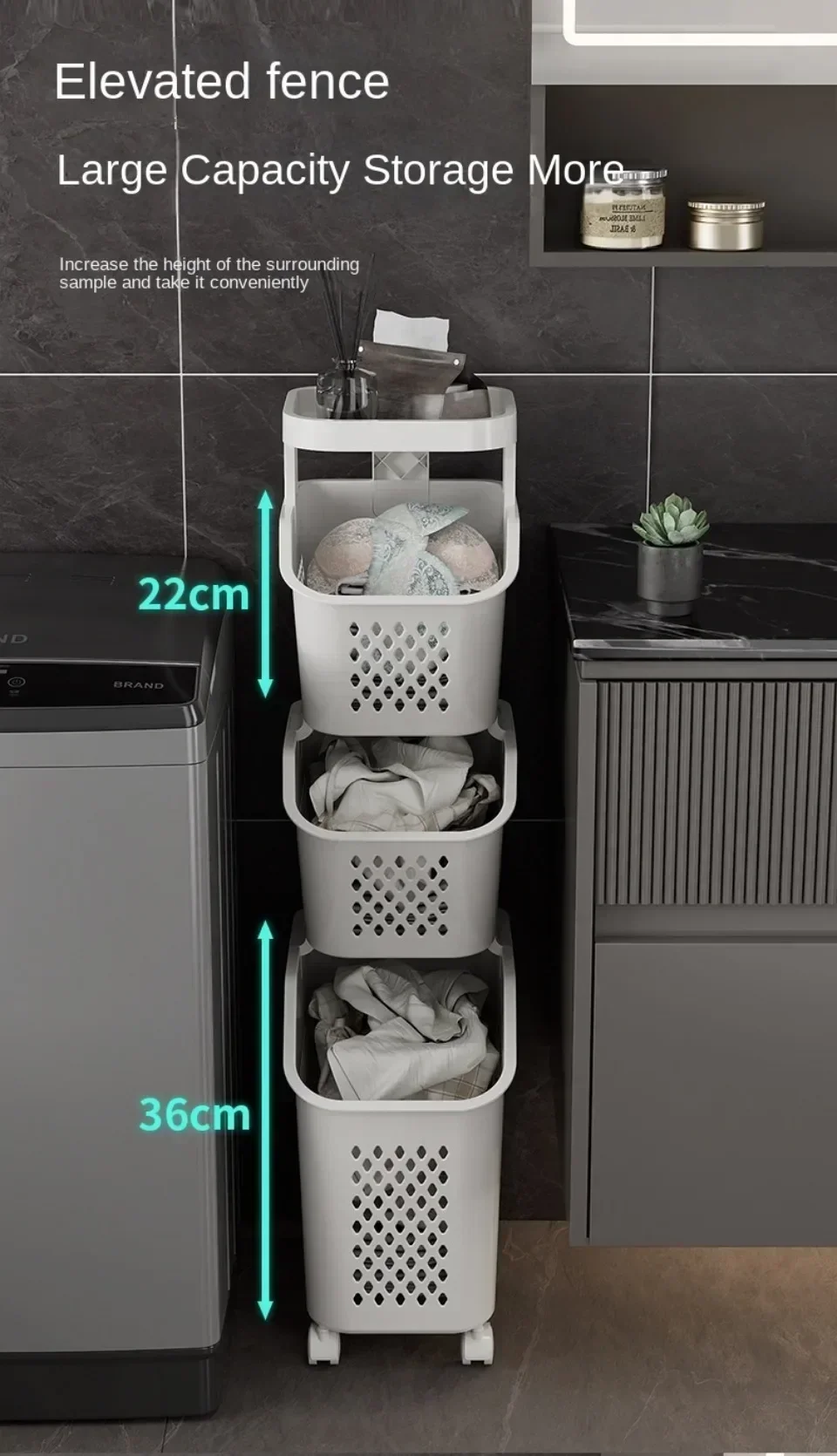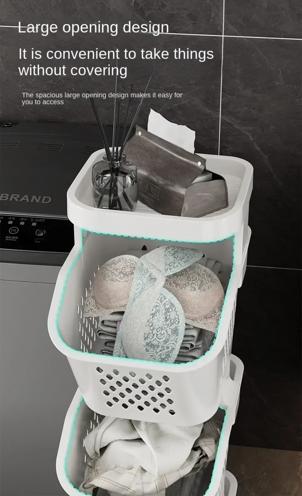 Laundry Storage Rack Basket Multilayer Dirty Clothes Storage Basket With Wheel Large Capacity Household Bathroom Shelf Organizer
