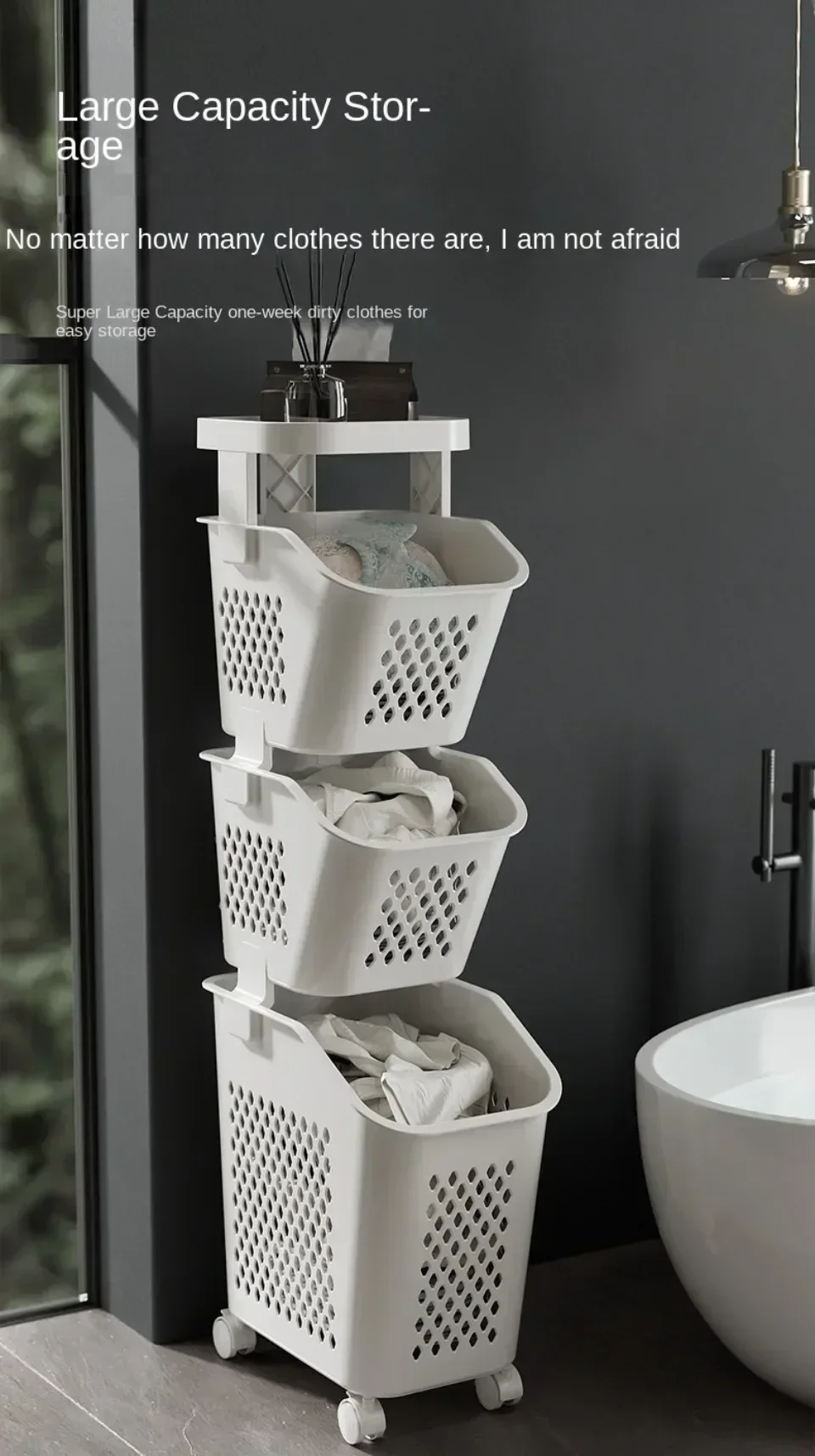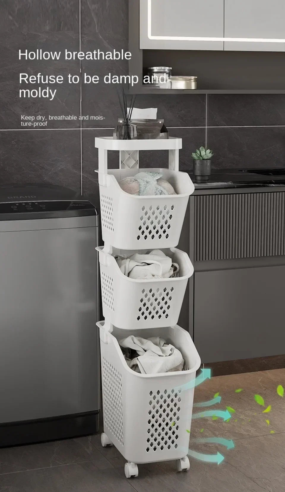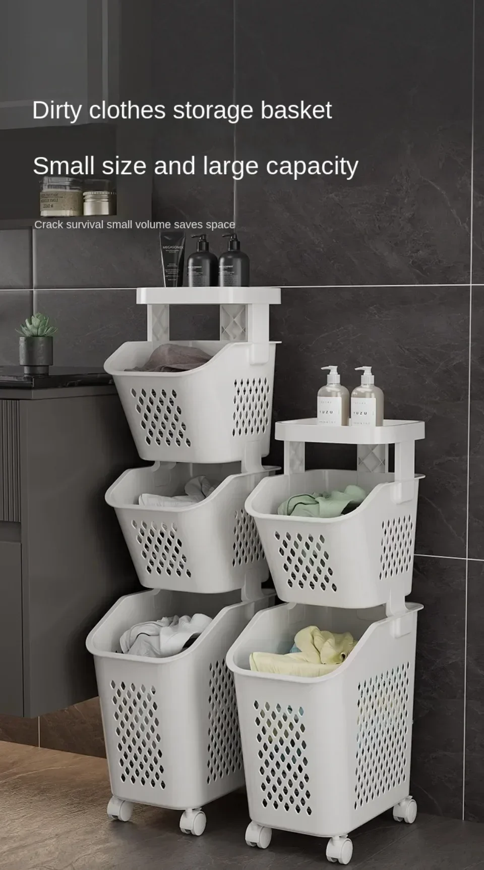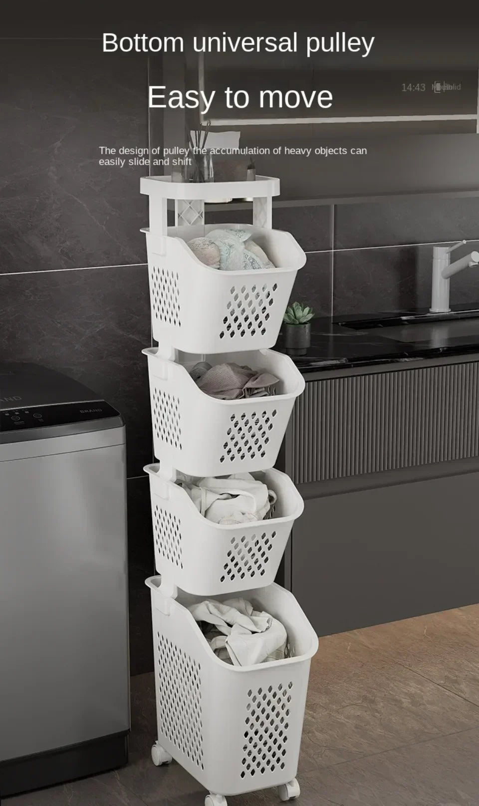 Laundry Storage Rack Basket Multilayer Dirty Clothes Storage Basket With Wheel Large Capacity Household Bathroom Shelf Organizer