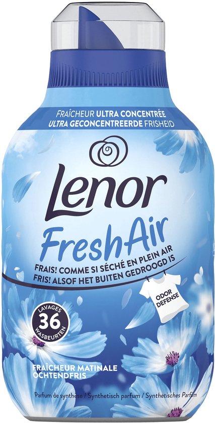 Give your laundry an incomparable feeling of freshness, as if it had been air-dried, even indoors. Lenor Fresh Air Fabric Softener - Morning Freshness benefits from an ultra-concentrated and innovative formula, designed to protect against odors while maintaining long-lasting freshness.