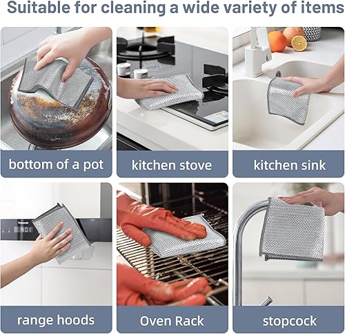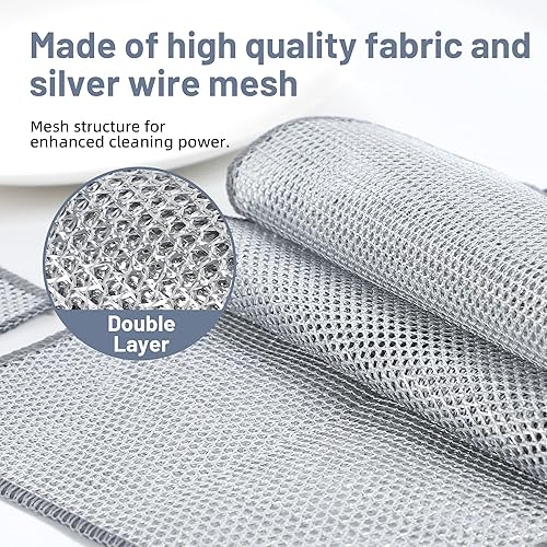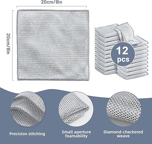 Discover this set of 12 multi-purpose non-scratch dishcloths, featuring a double layer of silver metallic mesh, ideal for effectively cleaning...
