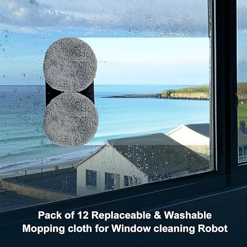 Set of 12 replacement microfiber mops for robot window cleaner, machine washable and reusable, compatible with models C65 188/168.