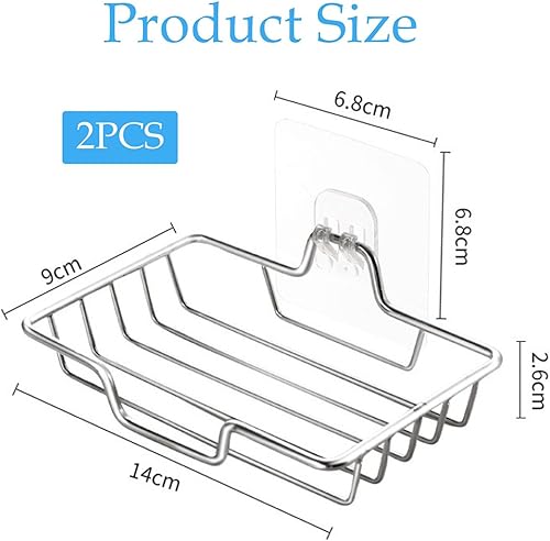 2 Pack Stainless Steel Wall Mounted Soap Dish Holder with Hook No Drilling for Shower Bathroom Kitchen