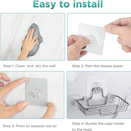 Set of 2 heavy duty self-adhesive stainless steel soap dishes with hook, install without drilling, perfect for shower, bathroom or kitchen - silver finish.
