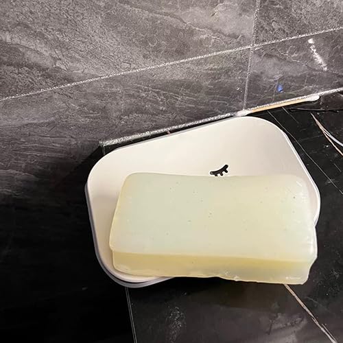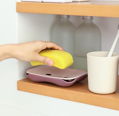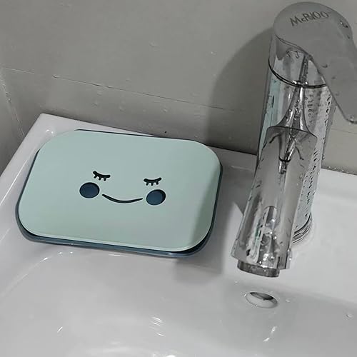 Set of two smiling soap dishes, in blue and pink, featuring a non-slip design, ideal for use in the kitchen...