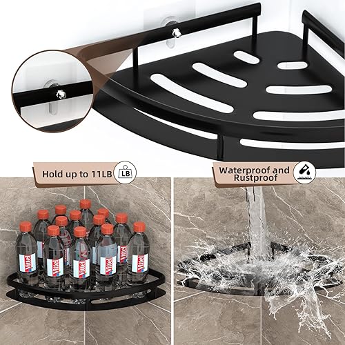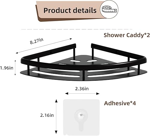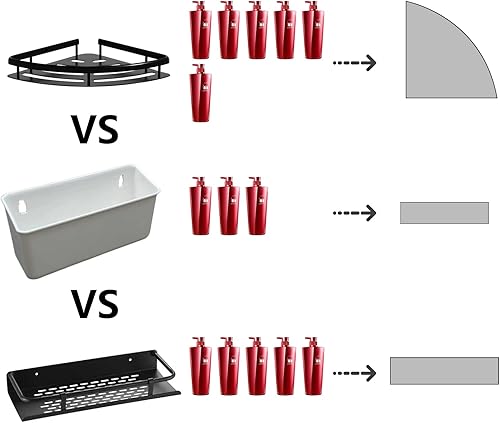 ✔ 【Strong and Powerful】: Our shower caddy provides an upgraded version of non-marking transparent adhesive with superior stability, 27cm long and longer than most products on the market, so each shower caddy can hold 40 pounds of products and is attached with a durable, traceless adhesive that will not damage your shower wall. Removal Instructions: Heat the sticker with a hair dryer and peel it off slightly under sufficient heat.