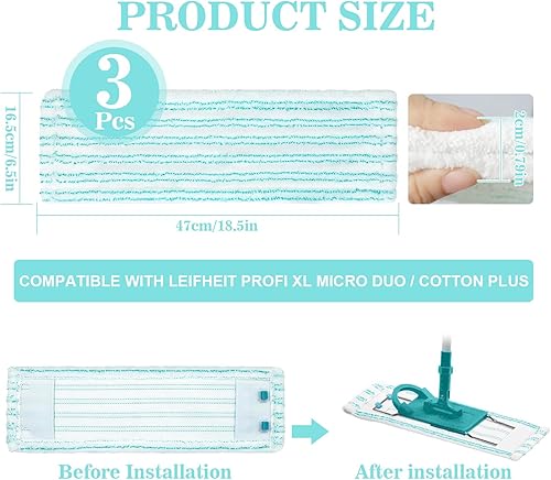 This set includes 3 replacement mops compatible with the Leifheit Profi XL Micro Duo / Cotton Plus mop.