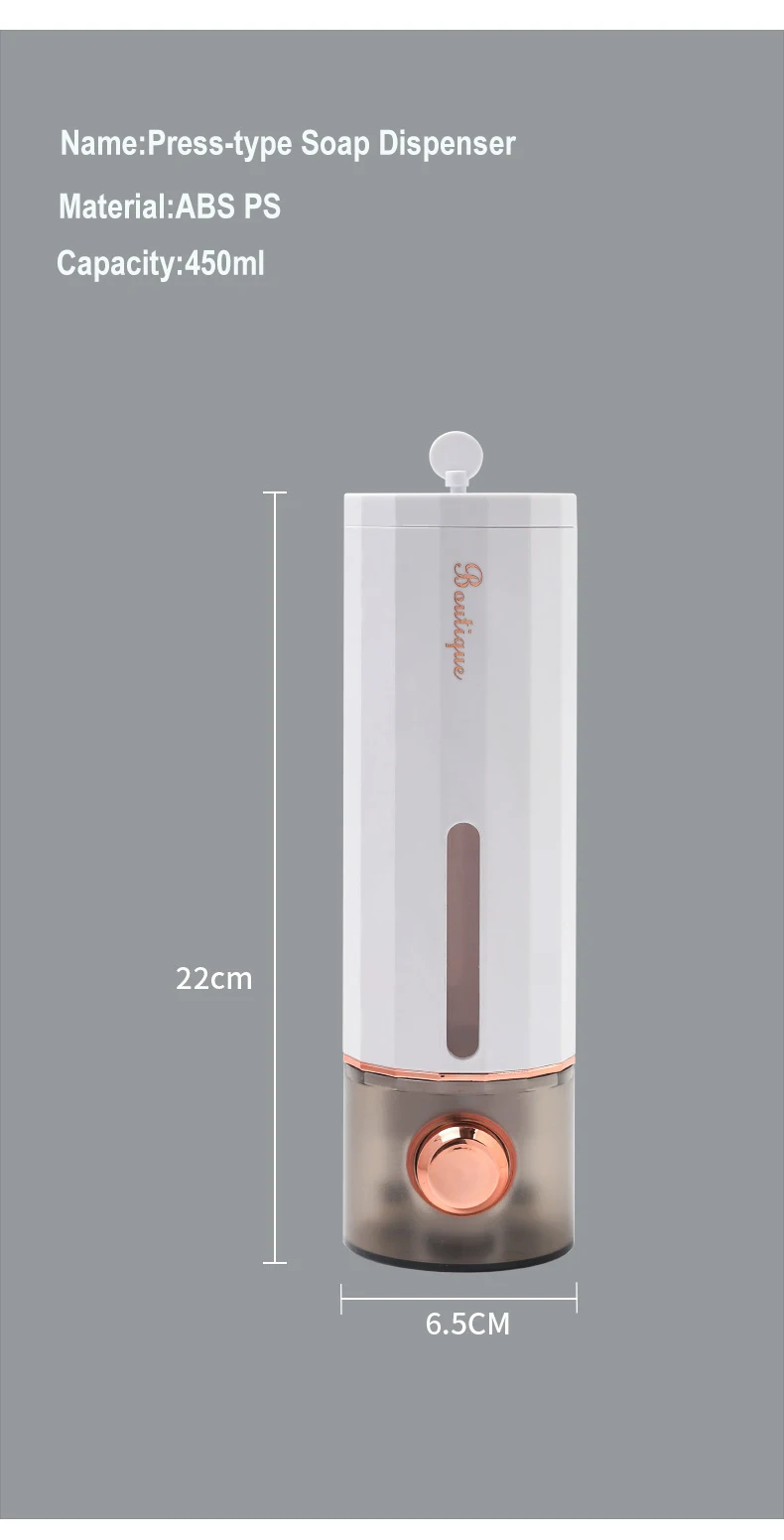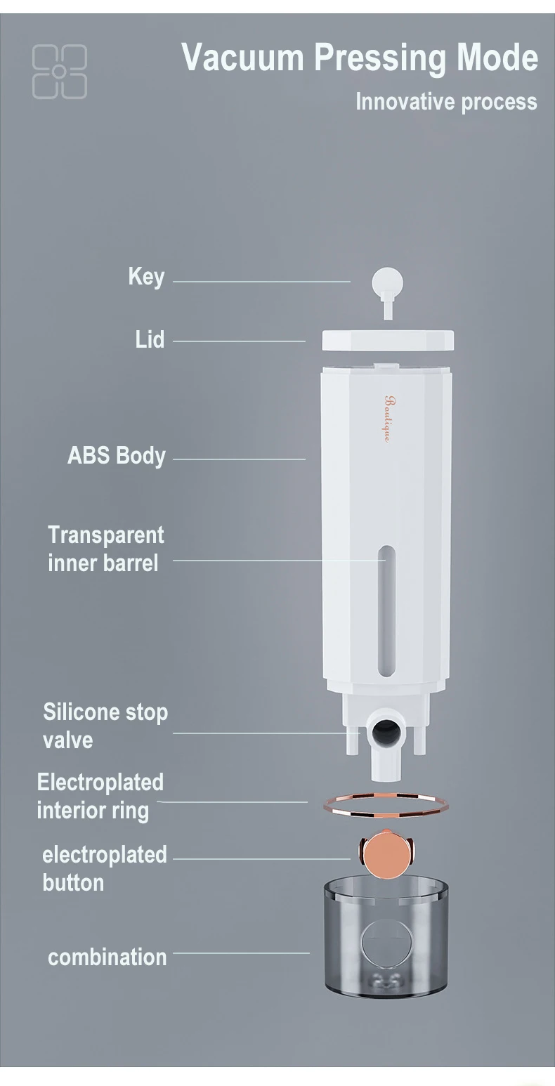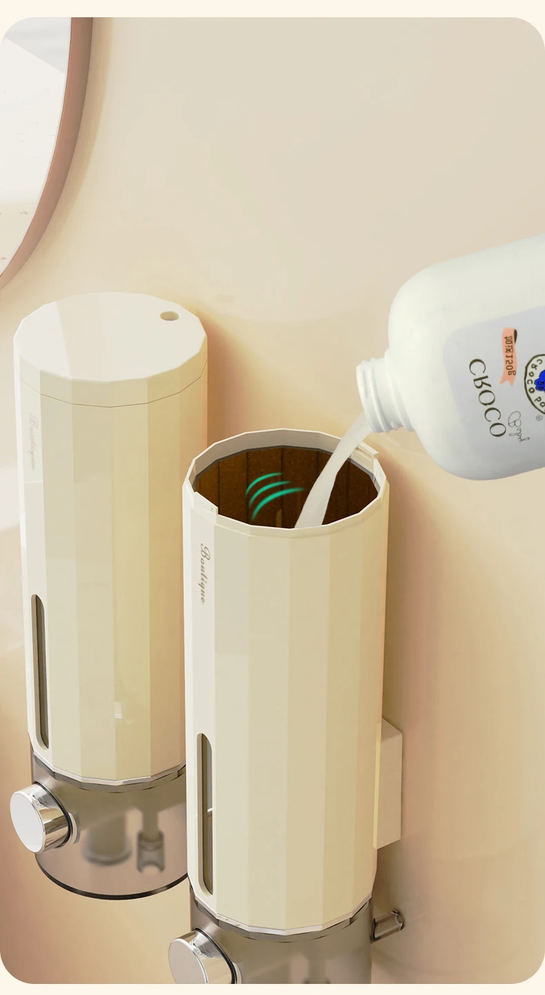 Ideal for various liquids such as shower gel, shampoo or hand sanitizer, this dispenser guarantees precise dosage with each use, thus promoting optimal hygiene.