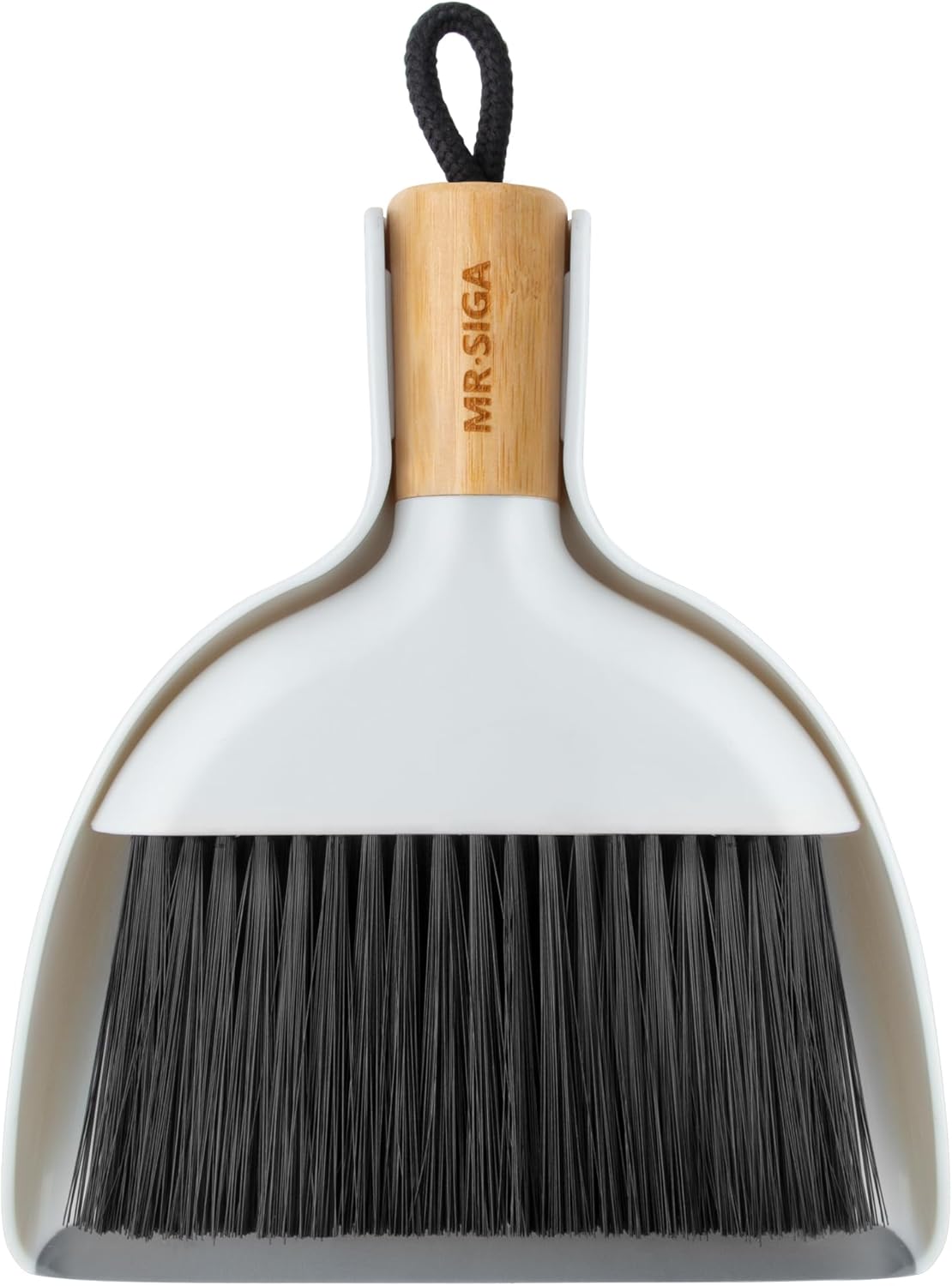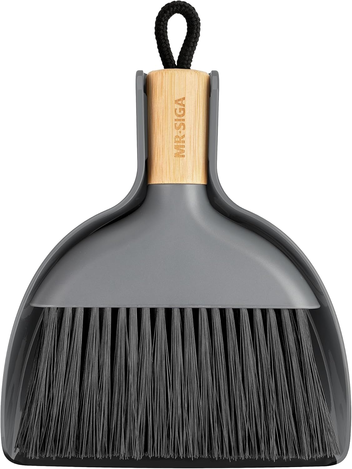 Made with a natural bamboo handle, this mini dustpan and brush set ensures an ergonomic grip.
