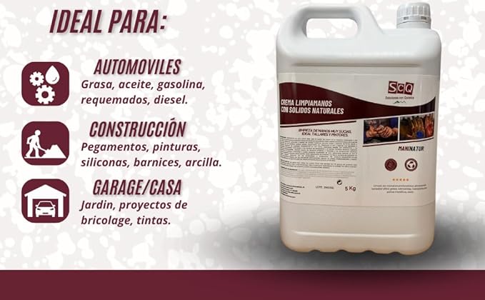 Cleaning paste for heavily soiled hands, specially formulated with natural abrasive particles, ideal for mechanics. This natural cleaner effectively removes stubborn dirt, including grease and diesel, for thoroughly clean hands. Available in a 5 kg format, it is designed for intensive professional use.
