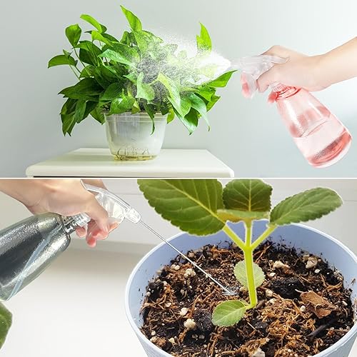 This set of 3 Newpop refillable spray bottles, made of transparent plastic, with a capacity of 500 ml, is suitable for watering flowers, styling hair and cleaning tasks.
