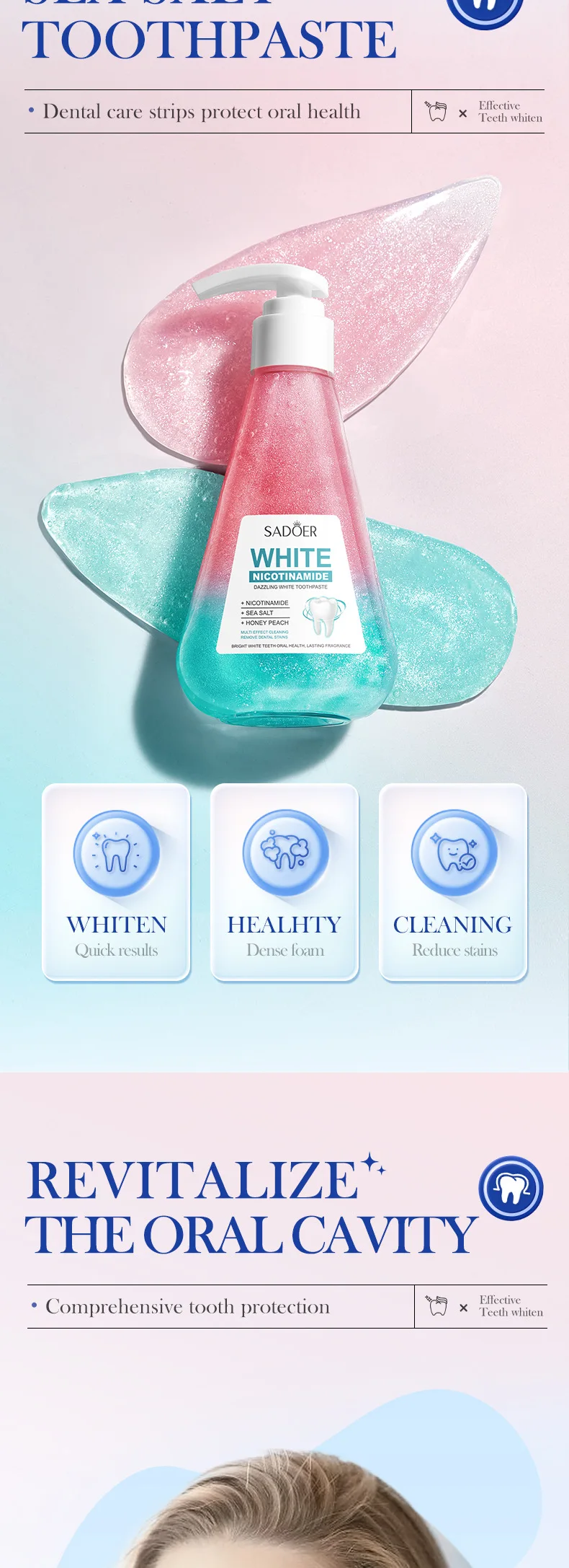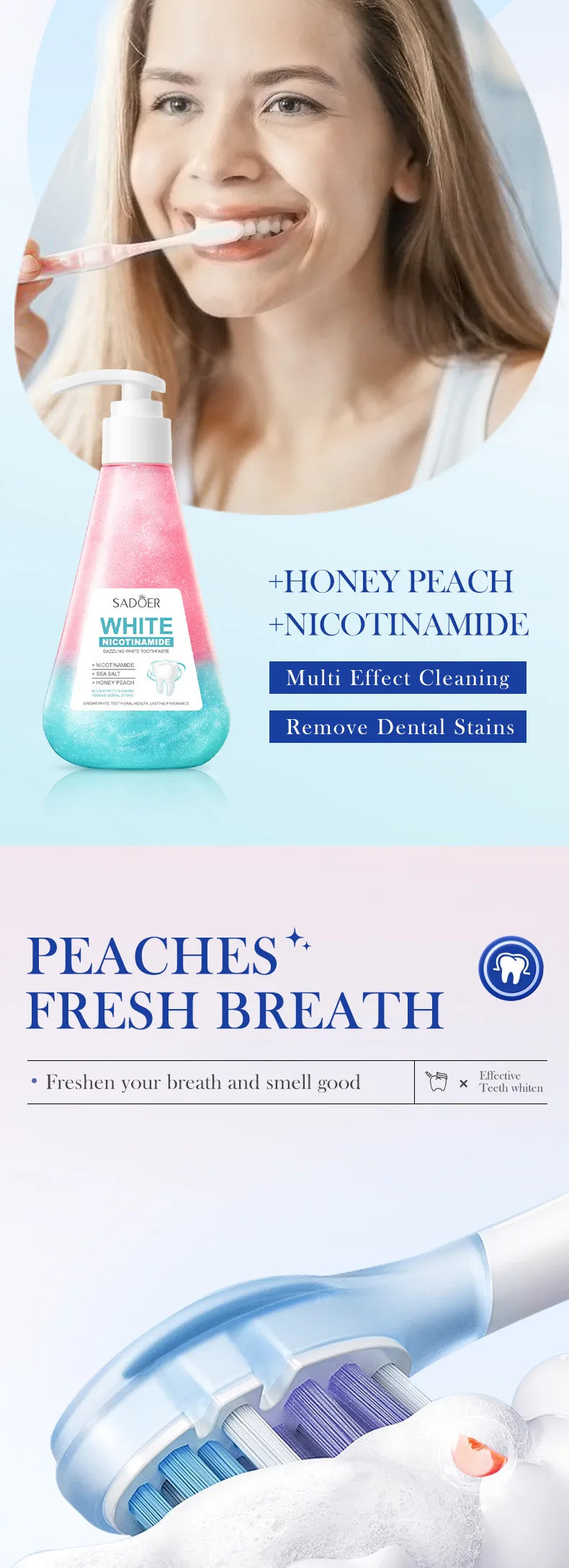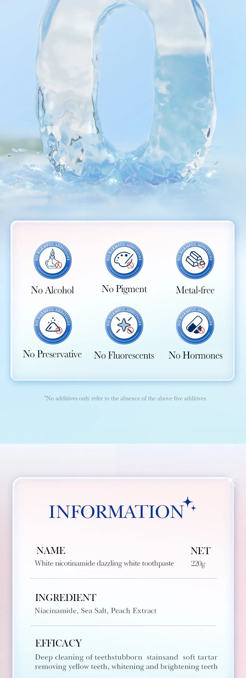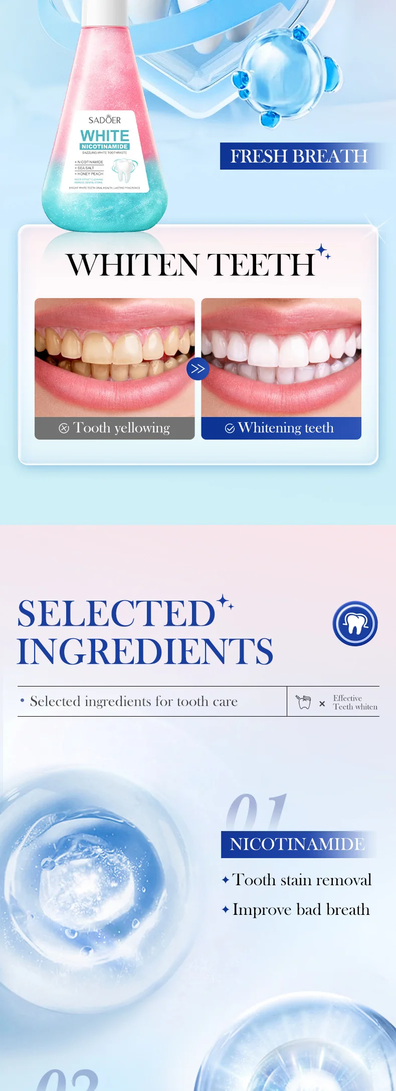 Niacinamide Toothpaste Whitening Teeth Remover Stain Cleans Teeth and Mouth Fresh Breath Toothpaste 220g