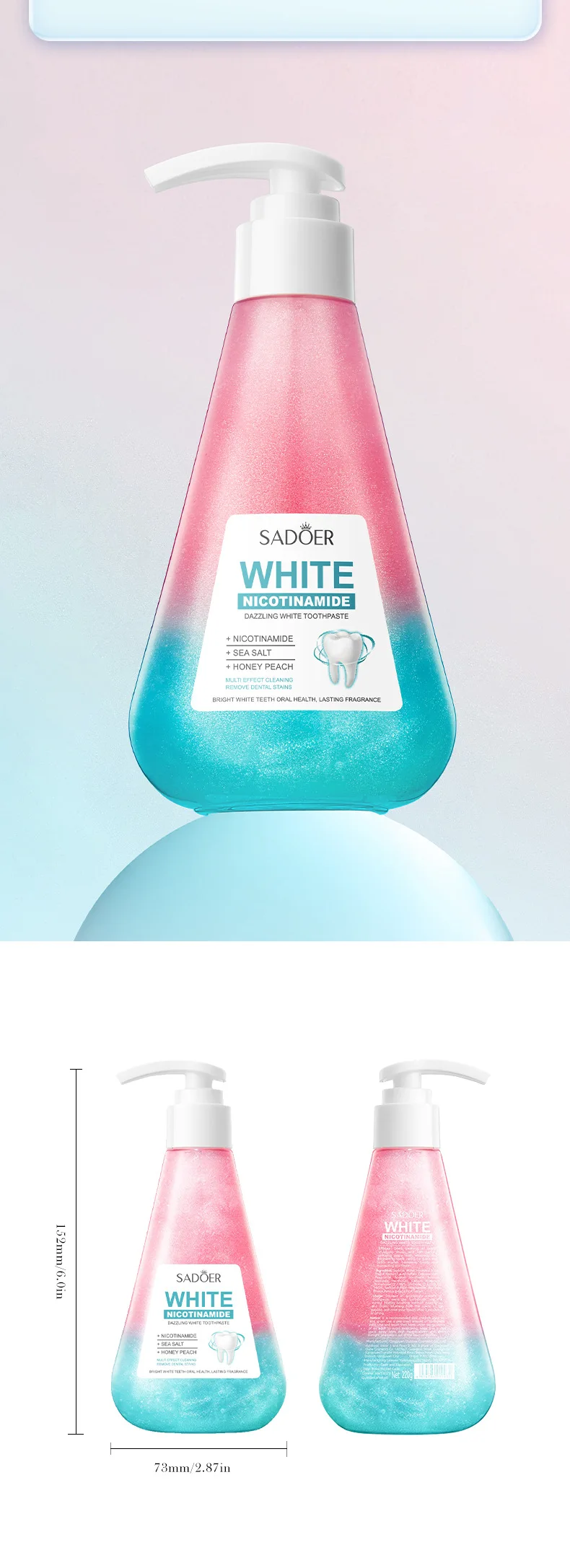 SPECIFICATIONSAge: adultsBrand Name: Bamboo WorldChoice: yesHigh-concerned chemical: NoneIngredient: NiacinamideItem Type: ToothpasteModel Number: Toothpaste WhiteningNET WT: 220gNumber of Pieces: One UnitOrigin:...
