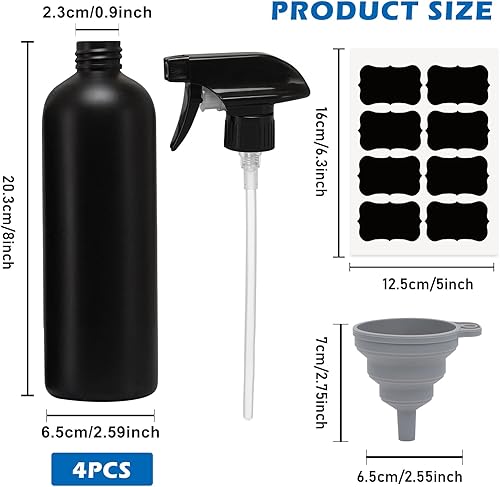 Nizirioo offers a set of 4 empty plastic spray bottles, ideal for gardening and household cleaning. These spray bottles, complete with labels, make it easy to organize and use your solutions.