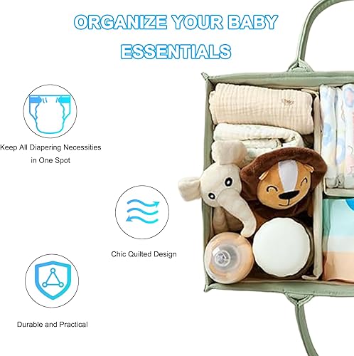 This sophisticated diaper organizer with a removable divider is specially designed for the needs of newborns. Measuring 15 x 10 x 7 inches, it offers convenient storage space, ideal for expectant mothers and makes a perfect baby shower gift, especially for a boy.