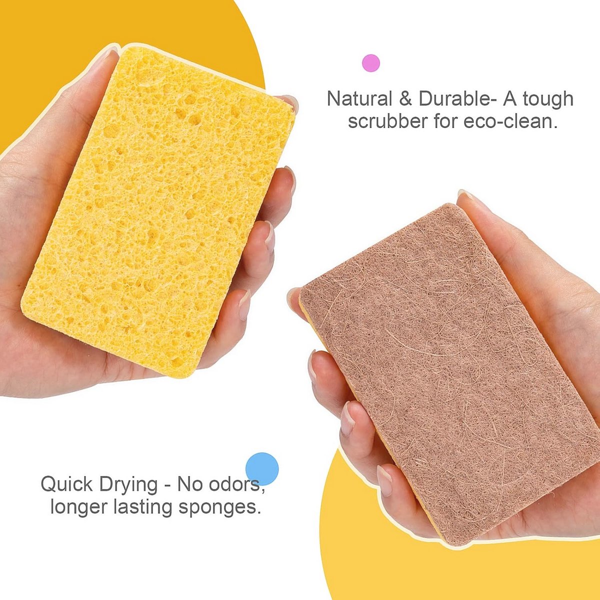 Made from 100% natural materials—cellulose, sisal, and coconut fibers—these sponges combine efficiency and respect for the environment.