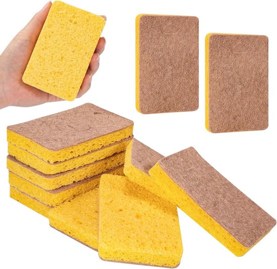 Discover our pack of 10 eco-friendly kitchen sponges, designed to offer a sustainable alternative to conventional products.