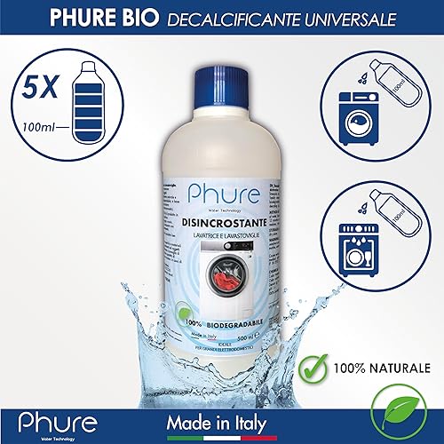 PHURE BIO DECALK is a natural and biodegradable multi-purpose descaler, specially formulated to effectively remove limescale deposits in household appliances such as washing machines and dishwashers.