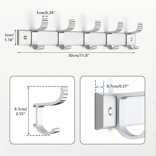 Each hook is 31cm long and includes 5 movable hooks, the distance between which can be adjusted according to your needs, allowing you to efficiently organize different items.