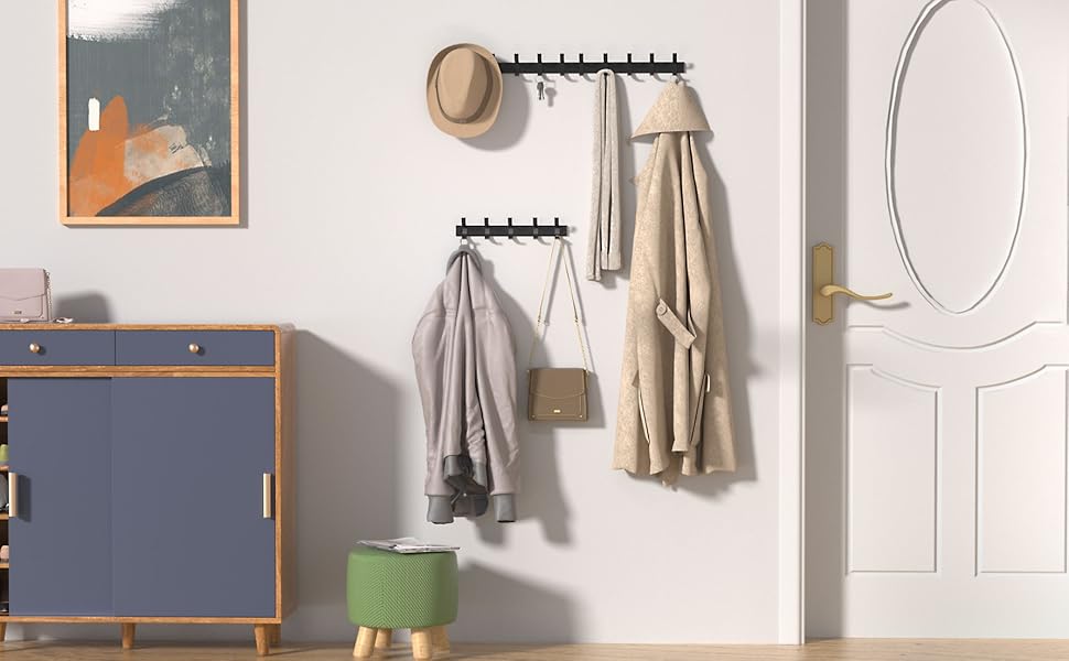 Each hook, measuring 31 x 3 cm, is equipped with movable hooks that can be adjusted according to your needs to hang various items, such as coats, bags, keys or towels.