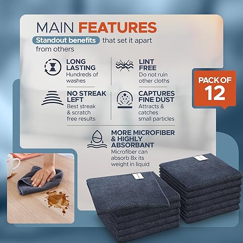 PORTENTUM microfiber cloths, sold in packs of 12, are designed to effectively clean all your surfaces effortlessly.