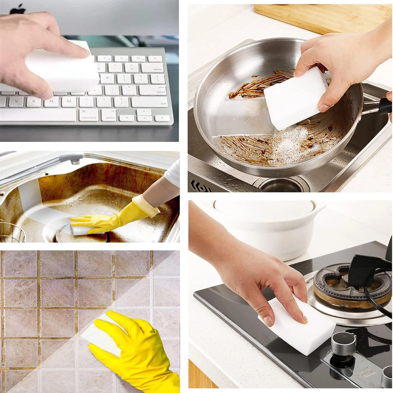 White melamine sponge eraser, three combinations, for cleaning dishes, kitchen, bathroom and office