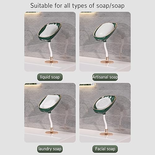 Suuwwn 2 Pack Leaf Shape Soap Dish with Drain Bathroom Soap Holder with Strong Suction Cup Removable No Drilling for Kitchen Bathroom Shower Room
